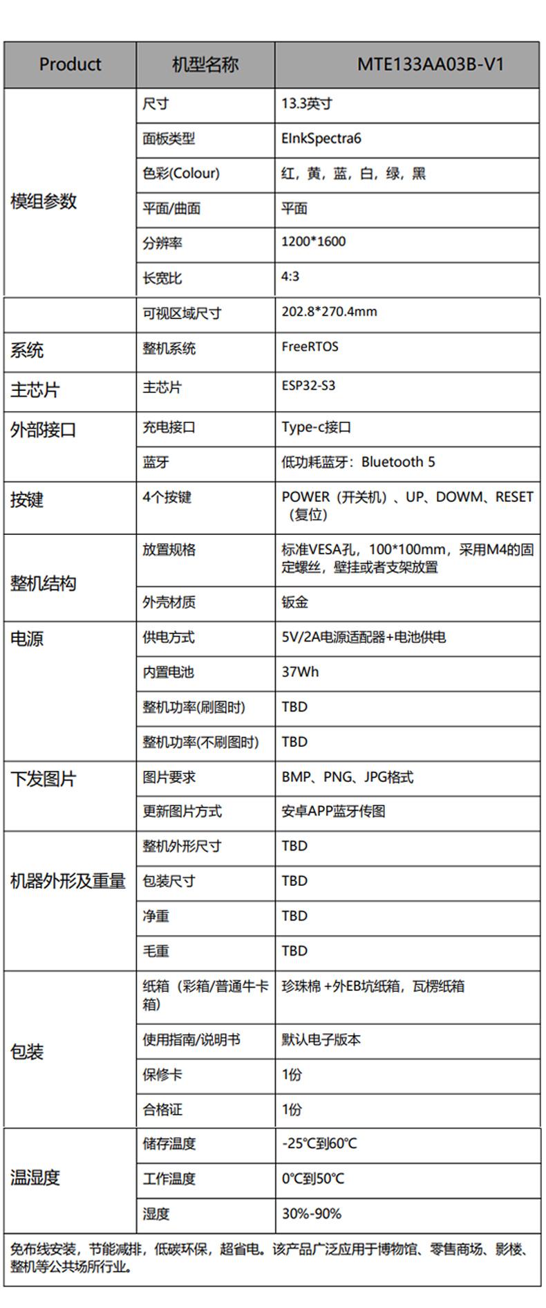 13.3寸電子紙墨水屏相框全彩低功耗1200*1600藍牙電子墨水顯示屏